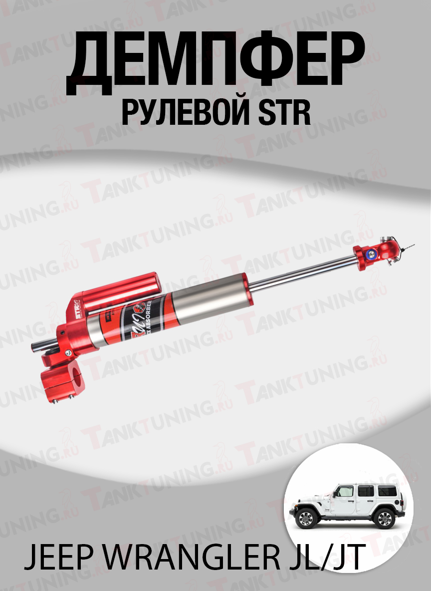 Рулевой демпфер STR для Jeep Wrangler JL / JT (Gladiator) помогает снизить резкие удары и лишние колебания на руле при движении по колее, грейдеру, камням и разбитому асфальту. Это полезная доработка для машин, которые ездят не только по городу, но и по бездорожью, а также для автомобилей с внедорожными шинами и изменённой подвеской.