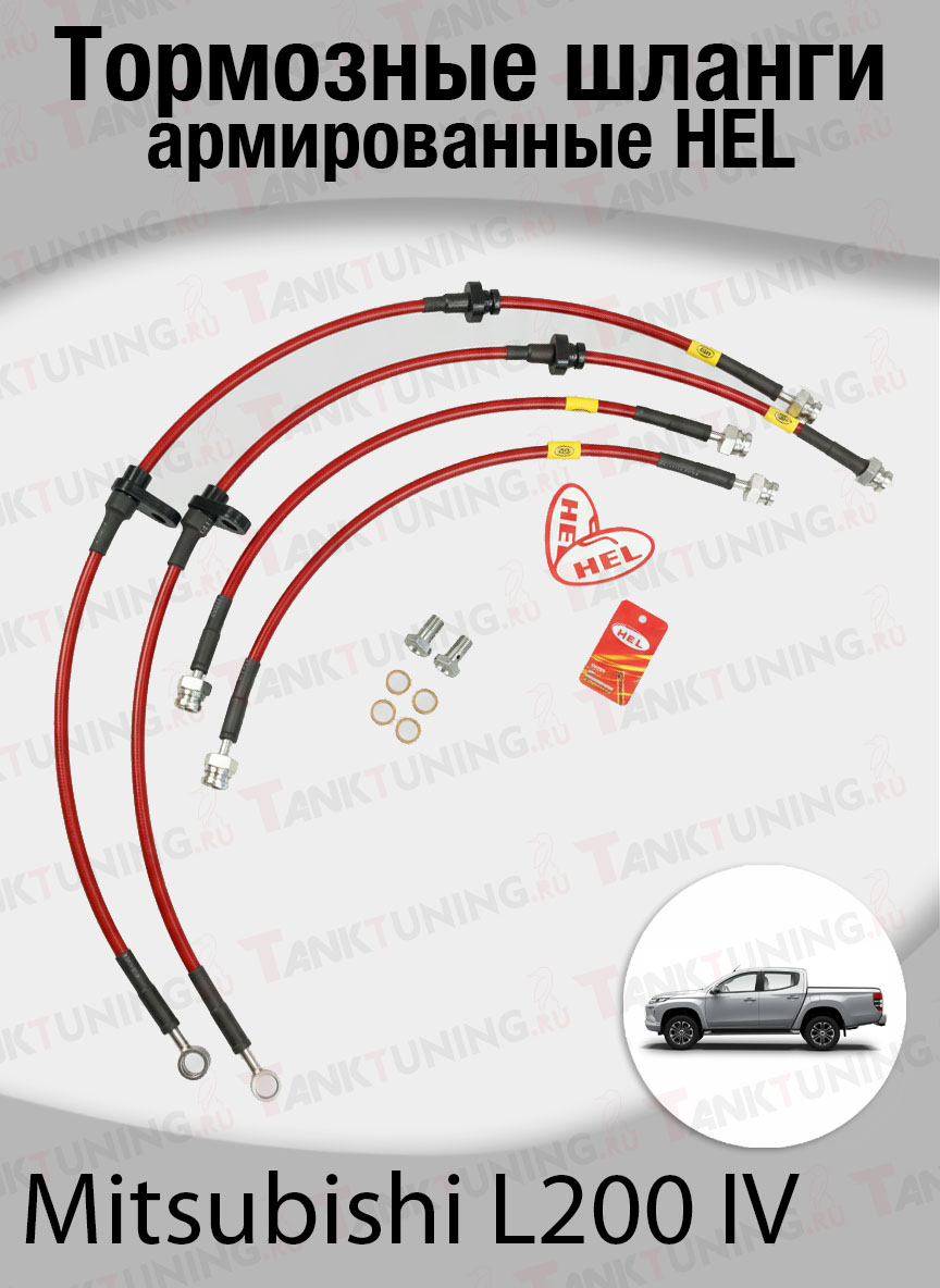 Комплект армированных тормозных шлангов для Mitsubishi L200 IV (2006-2015). Нержавеющая оплётка снижает расширение шланга под давлением и уменьшает риск протечек. Температура −70…+260 °C. Сделано в России.